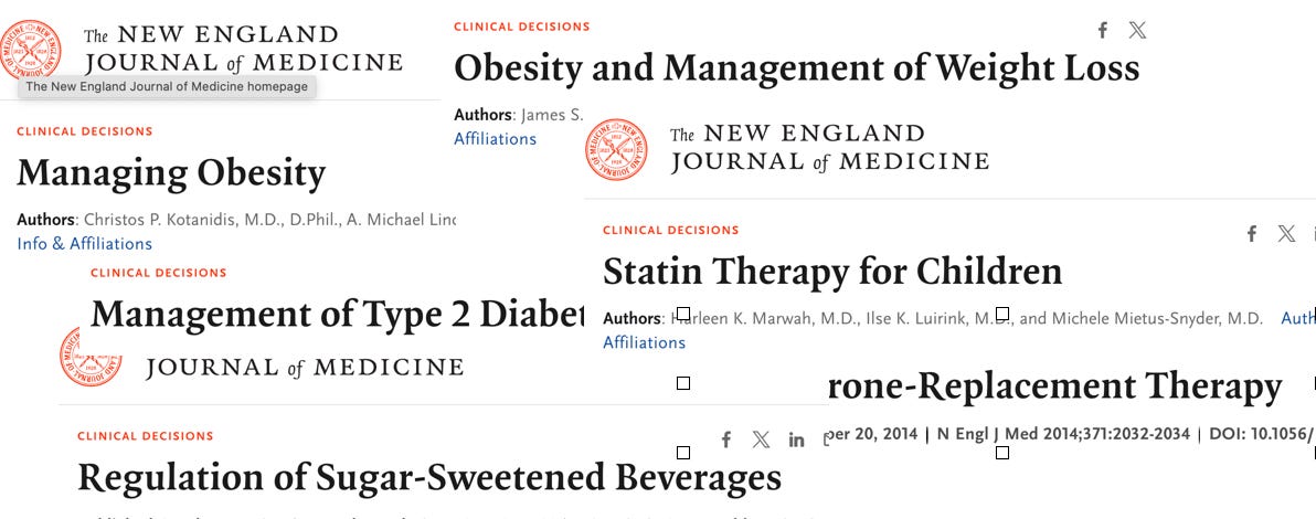 Along the way, we’ve also gotten sporadic glimpses of how the NEJM editors think about weight reduction and it’s naive—eat less, move more—and how their thinking, even in these seemingly benign clinical decision vignettes, then reinforces the group think in the field.2
